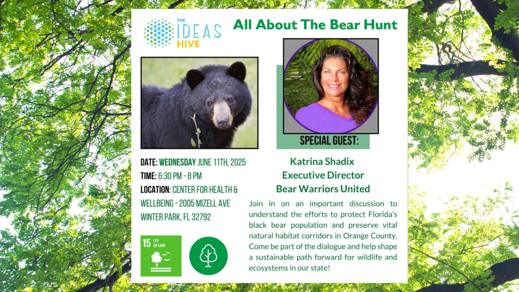IDEAS For Us is teaming up with the Center For Health and Wellbeing to host their event called the IDEAS Hive and inviting Katrina Shadix, the Director of Bear Warriors of Bear Warriors United to speak on the 2025 Proposed Bear Hunt.